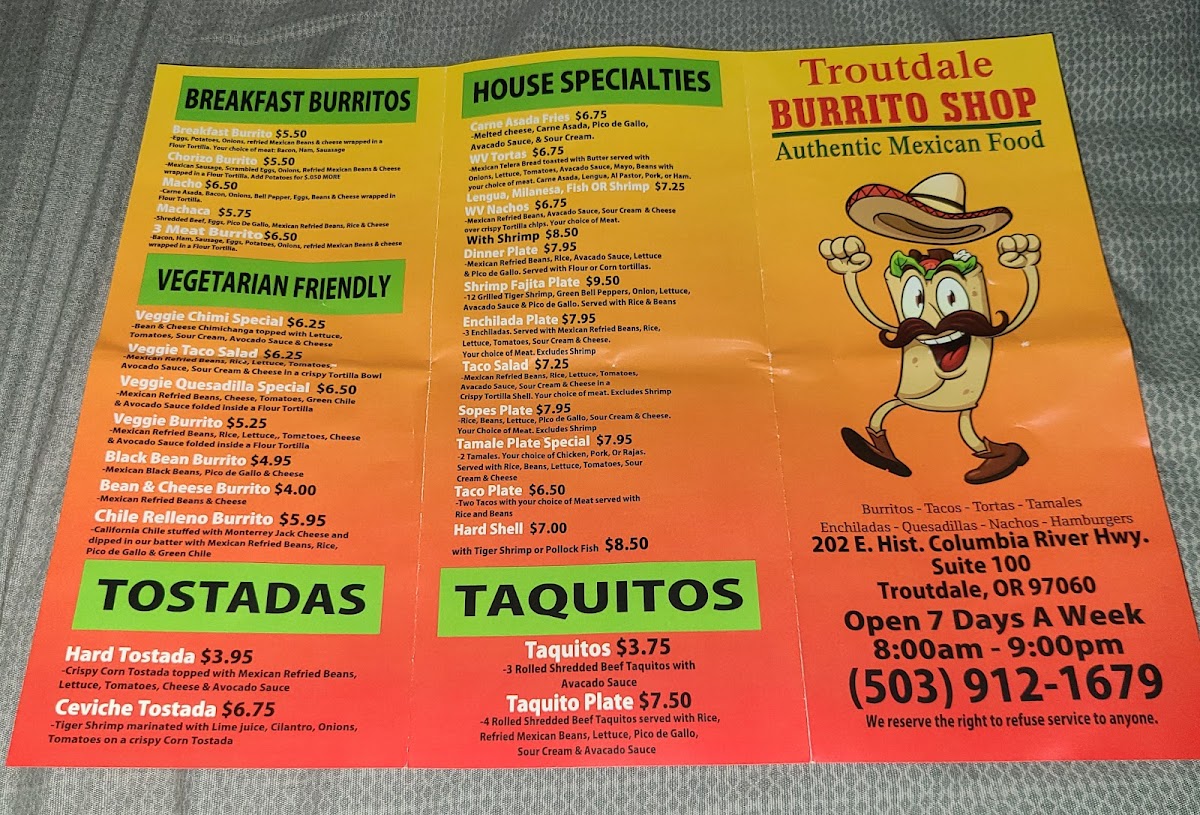 Troutdale Burrito Shop Menu
